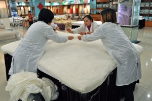 Vårt första stopp var ett av stadens ledande sidenspinnerier. Intressant att få se processen från ax till limpa, eller snarare från larv till – istoppstäcke. Jo ett par sådana blev det, kunde inte motstå dem efter att ha känt på de tjocka sidensjoken som guiden så påpassligt placerade i mina händer.